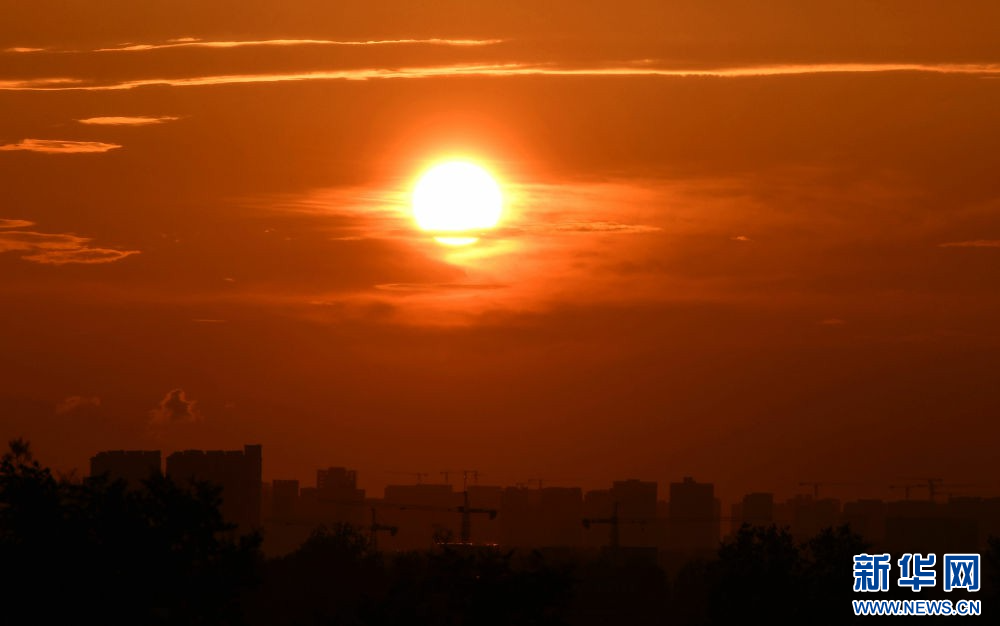 这是6月16日在陕西西安拍摄的落日景象。新华社记者 沈虹冰 摄