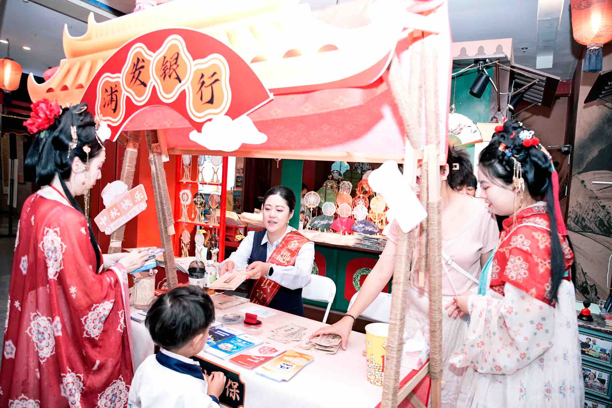 踏入园游会,宛如开启奇幻“穿越”模式。游客们在入口处从英姿飒爽的“女将军”手里领取到通关文牒,就此踏上奇妙的通关之旅。活动现场,8个金融消保宣传阵地,摇身一变化作八大坊市关卡,“时辰里的消保”“金融知识刮刮乐”等精彩项目依次呈现。金融知识如灵动的精灵,巧妙地融入赏景游玩之中,又在诗歌情境里翩翩起舞。游客们通过知识问答或趣味互动游戏,在通关文牒上打卡盖章,收获金融知识的同时还能赢取限量版“银票”,尽情体验小浦钱庄非遗项目的独特魅力。