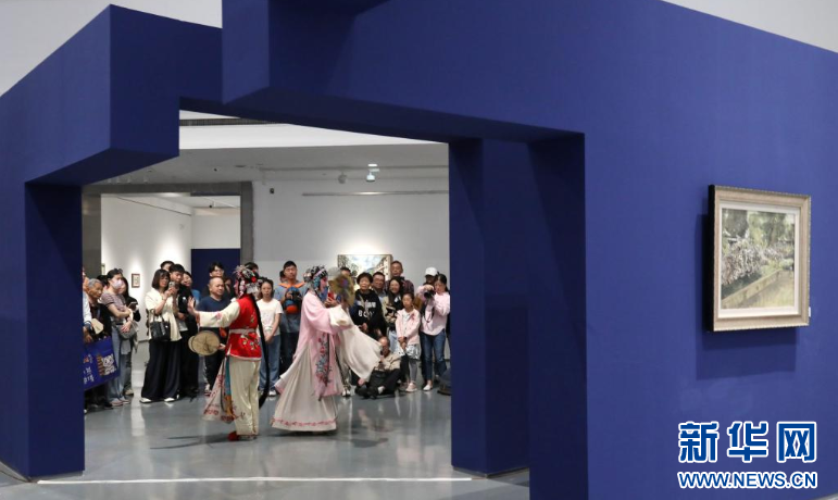 10月4日,游客在江苏省苏州美术馆观看昆曲《牡丹亭》。新华社发(杭兴微 摄)