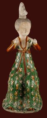 来自唐代的三彩梳妆女坐俑