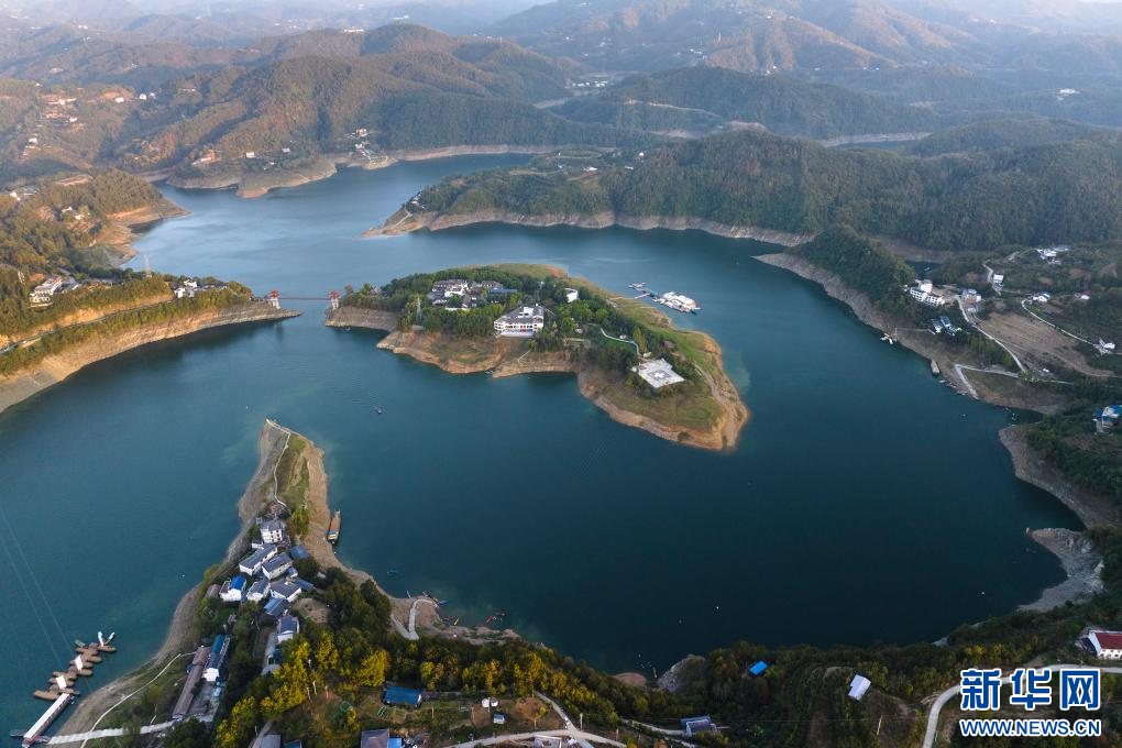 安康汉江瀛湖库区景色(11月2日摄,无人机照片)。