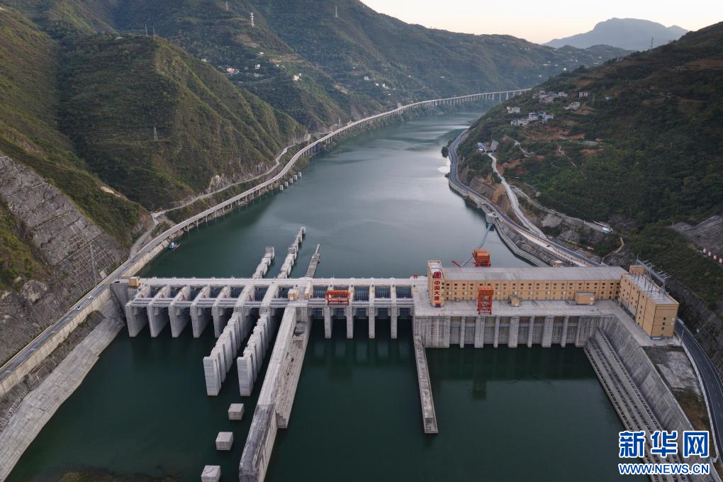 安康旬阳水电站段的汉江景色(10月22日摄,无人机照片)。
