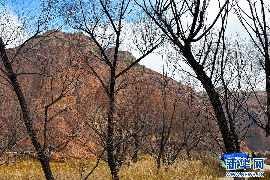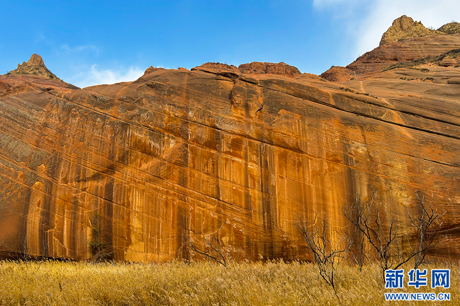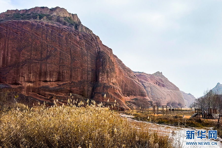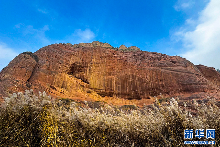 11月23日,芦苇映衬着波浪谷赤壁丹霞,让人心旷神怡。新华网 杨喜龙 摄pagebreak