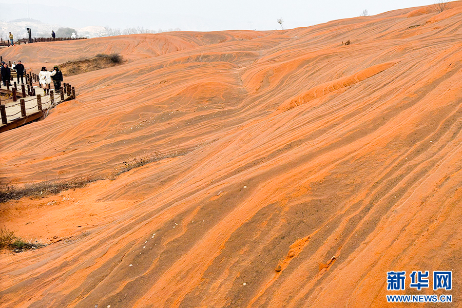 11月23日,游客在波浪谷体验赤壁丹霞冬日美景。新华网 杨喜龙 摄pagebreak