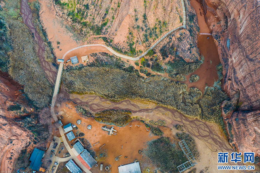 一条条、一弯弯、一圈圈,像黄河奔流,像红色海浪翻滚,映着谷底的芦苇……初冬的波浪谷景区“无风却起浪,无水也形波”,景色奇特美艳。