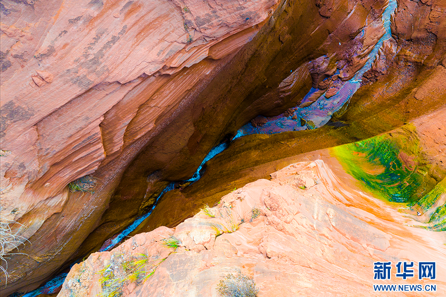 波浪谷景区,位于陕西省榆林市靖边县城龙洲镇境内,面积约44平方公里。景区内的丹霞地貌景观,主要形成于距今9600万年前的白垩纪时期。这里的各类线谷、巷谷、赤壁等奇特的丹霞地貌景观,清晰地记录了沙丘沉积与地质变迁过程。砂岩因沉积矿物质成分不同,呈现出颜色深浅差异,其红色主要是由于富含铁氧化物。(杨喜龙 雒婧婧)