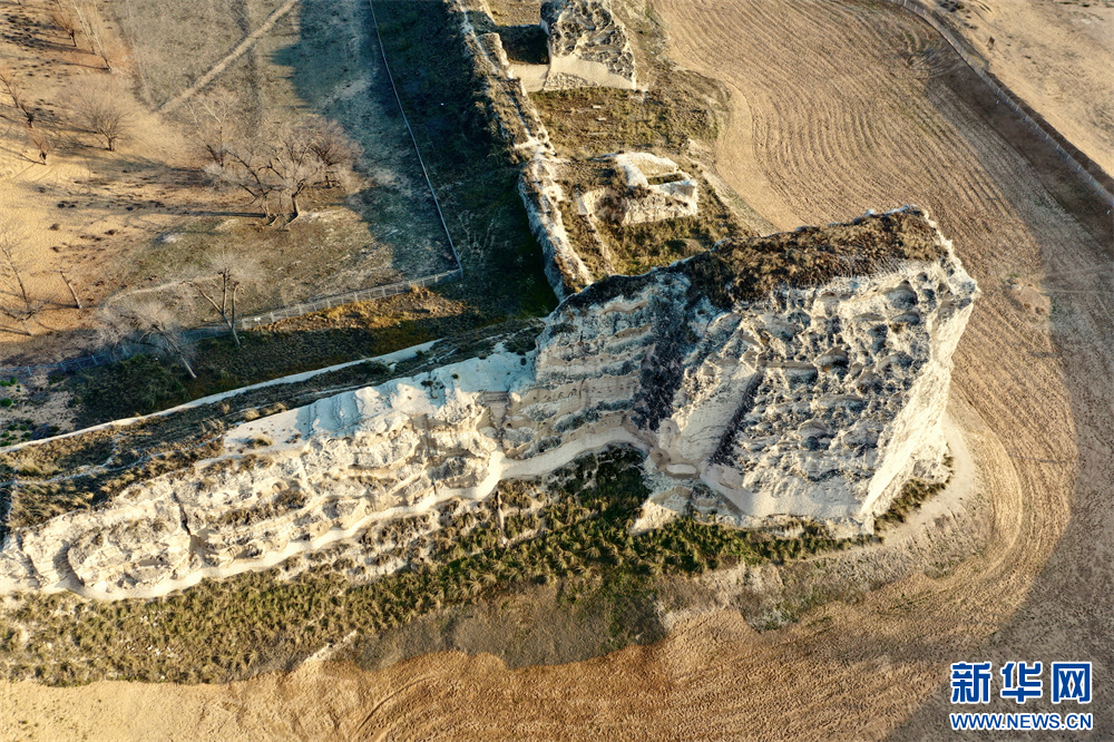 统万城西南角城台遗址(无人机照片)。新华网 王智超摄pagebreak