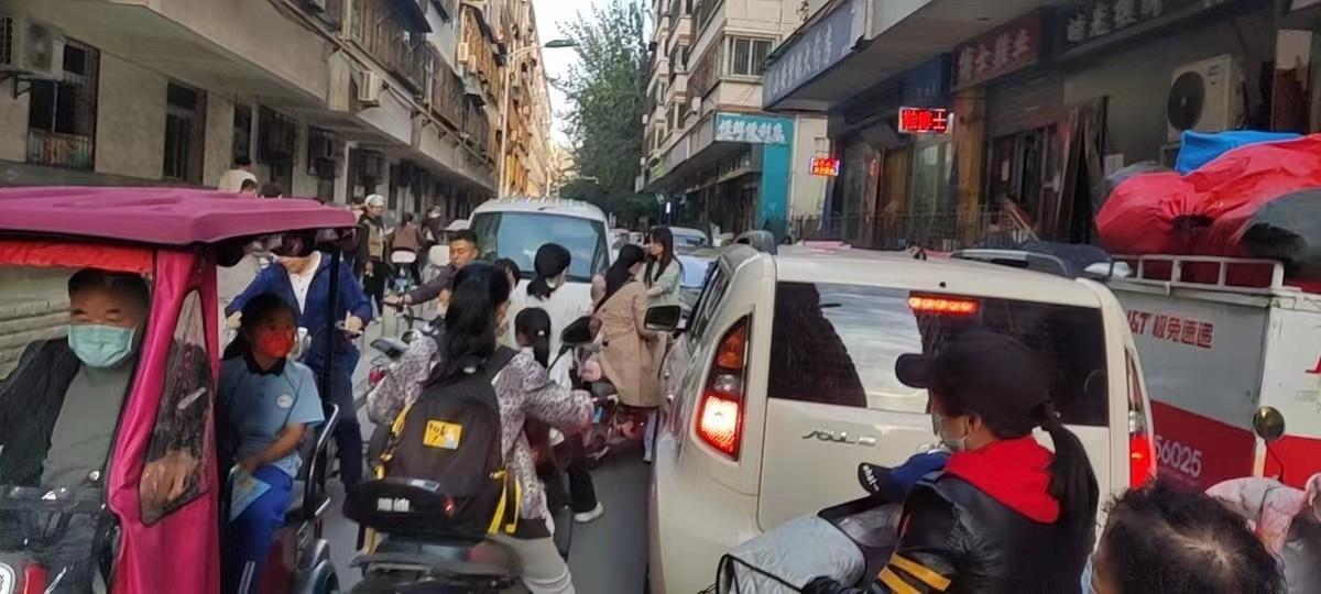 由街办组织周边城管、学校、社区、商铺、企业等27名负责同志,进入“紫铭路综合治理工作微信群”,共同开展治理工作。贺冠雄是群成员,在他的建议下,黄河实验小学开放了南门,小区开放了西门,引导学生和居民分流,参照街区制理念,弱化紫铭路的交通冲突。通过“警、校、家”协同,引导学生家长有序停放车辆。