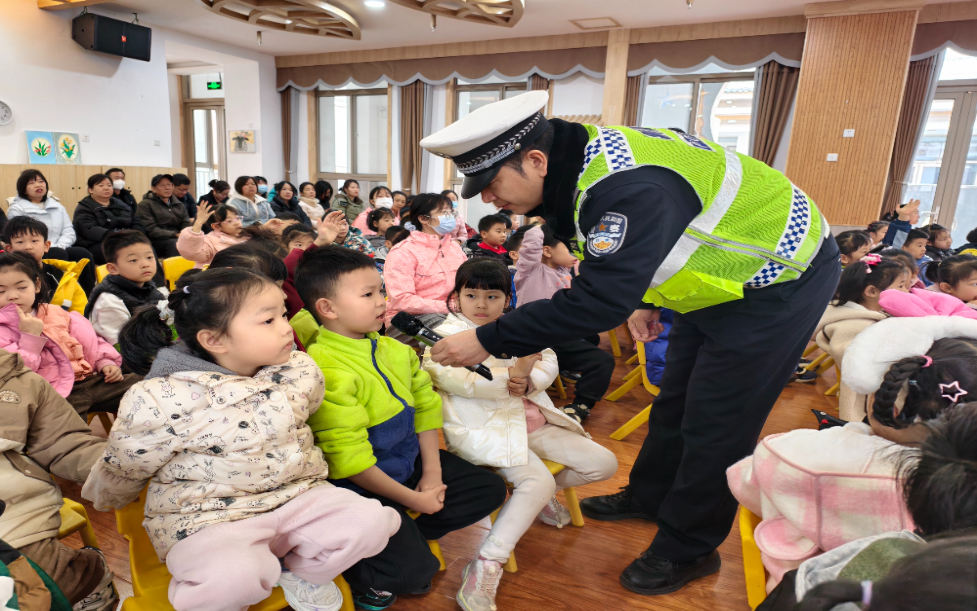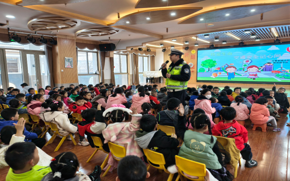2月14日,西安市新城区筑梦幼儿园开展“开学第一课”,邀请西安交警新城大队解放路中队民警,为孩子们带来“交警进校园,安全伴我行”的交通安全活动。民警通过视频讲解,现场互动等方式,让孩子们学习了更多的交通安全知识,提升了交通安全意识,帮助孩子们从小养成良好的交通行为习惯。
