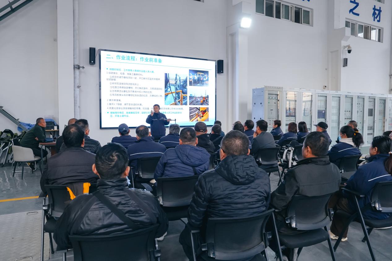 在宝鸡供电段实训基地,曹军明给工友们讲解接触网设备检修工艺。刘一江 摄
