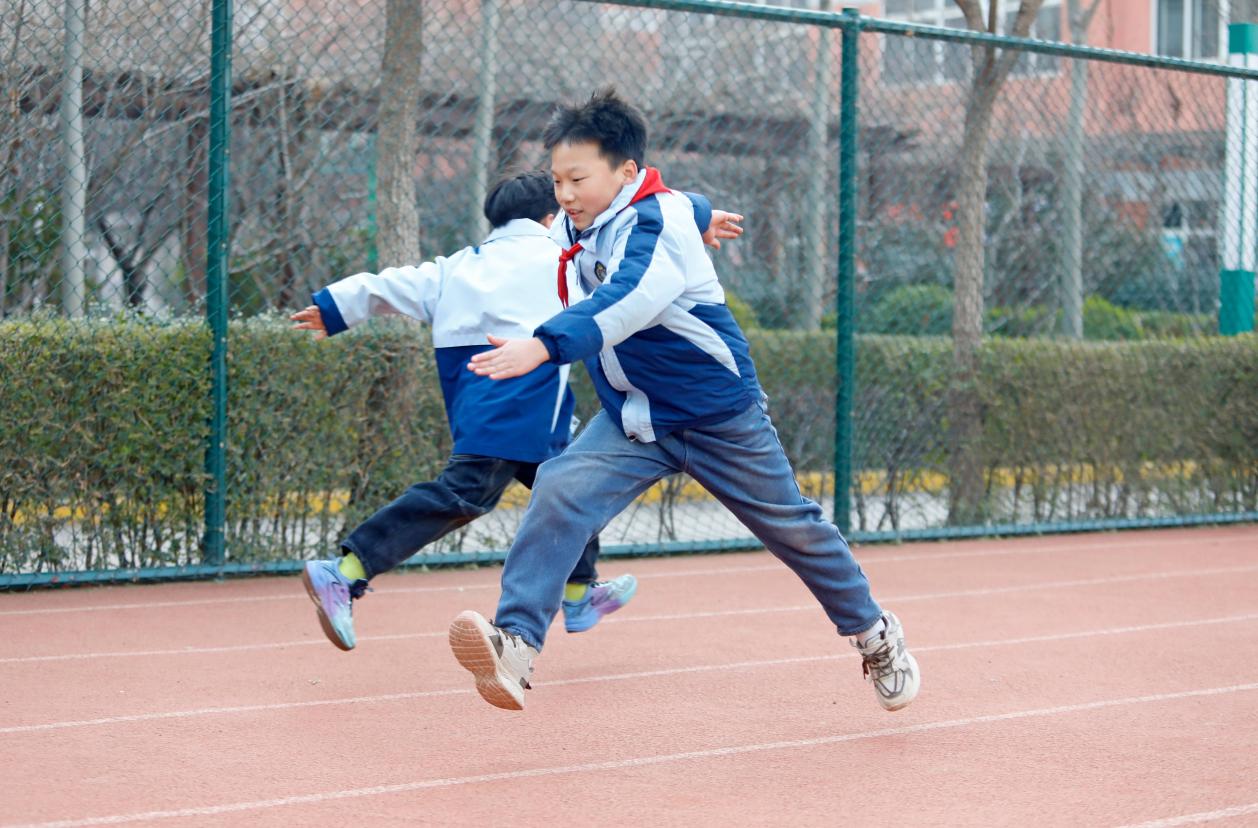 2025年2月27日,陕西省渭南市临渭区丰荫明德小学,小学生进行课间体育活动。崔正博 摄
