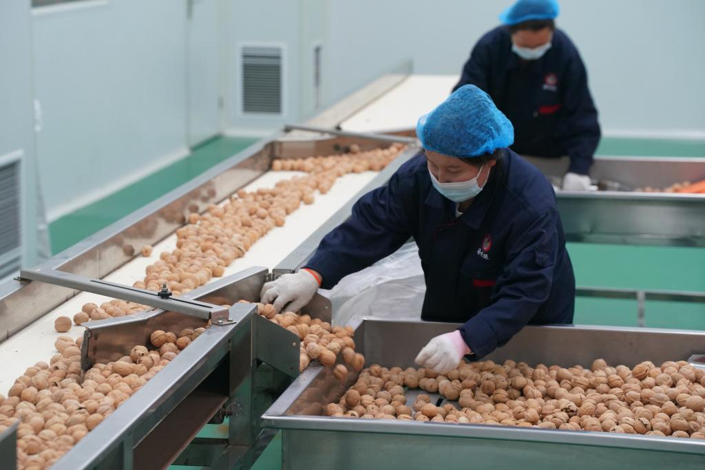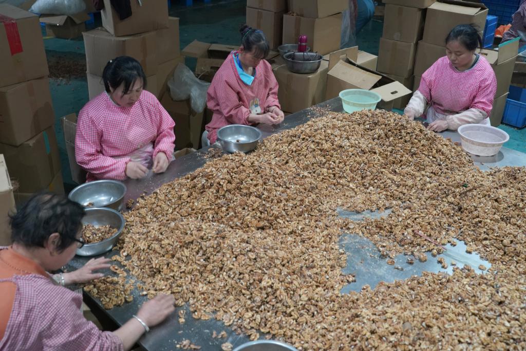4月22日,工作人员在洛南县一家核桃加工企业工作。新华社记者 邵瑞 摄