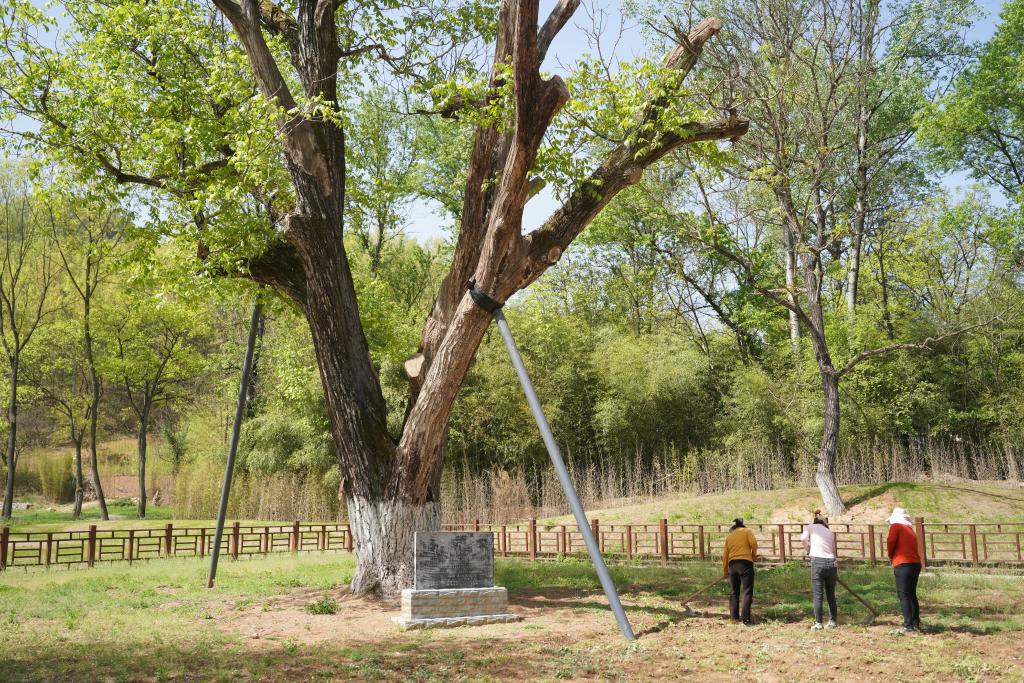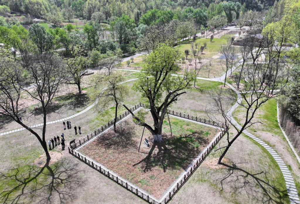 洛南县桃悠谷景区的特级保护古树——树龄1300余年的核桃树(4月23日摄)。新华社记者 邵瑞 摄