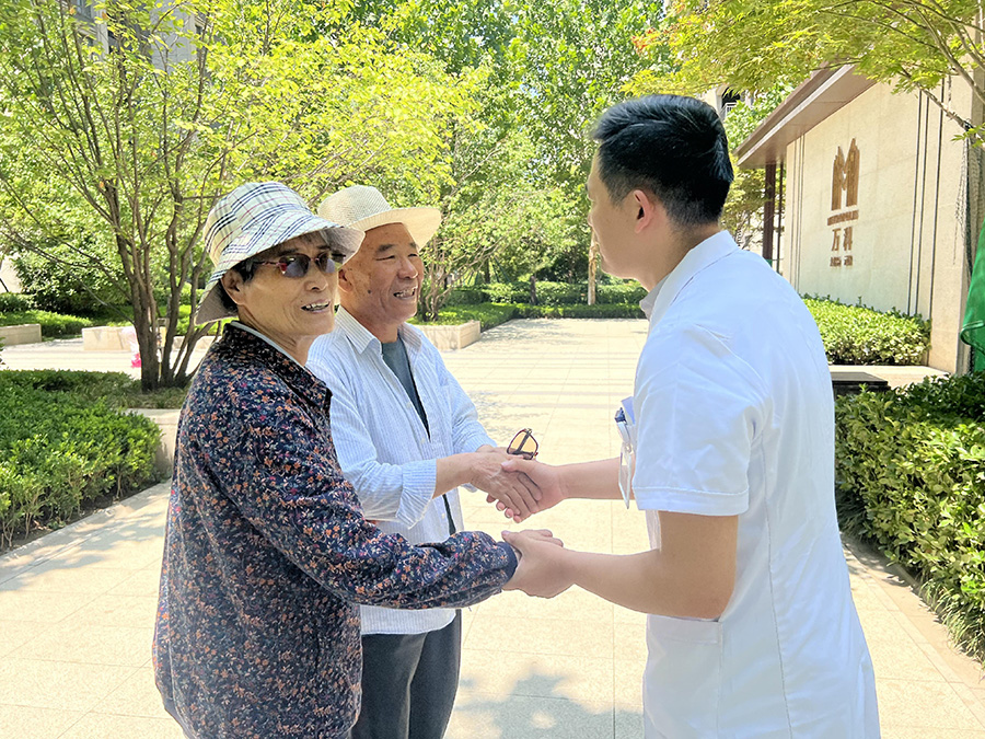 当天,从住户口中得知红会医院的医生来小区义诊,李爷爷和年过七旬妻子辛玉芳特意找过来当面致谢。小区住户也被这份34年的真挚情谊所感动。随后,谢飞医生和赵春雨医生仔细为辛玉芳老人体检复查。虽然老人旧伤恢复得相当不错,身体状况良好,医生们还是给老人叮嘱了日常保健等事宜。