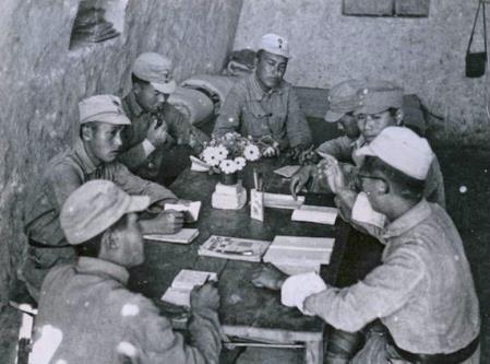 日本工农学校学员在进行学习讨论。(延安革命纪念地管理局提供)
