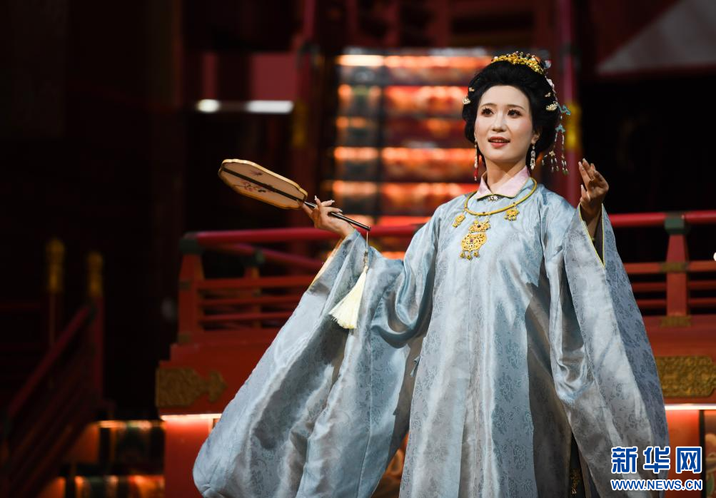 8月29日,演员在西安市长安十二时辰主题街区表演。 新华社记者 张博文 摄