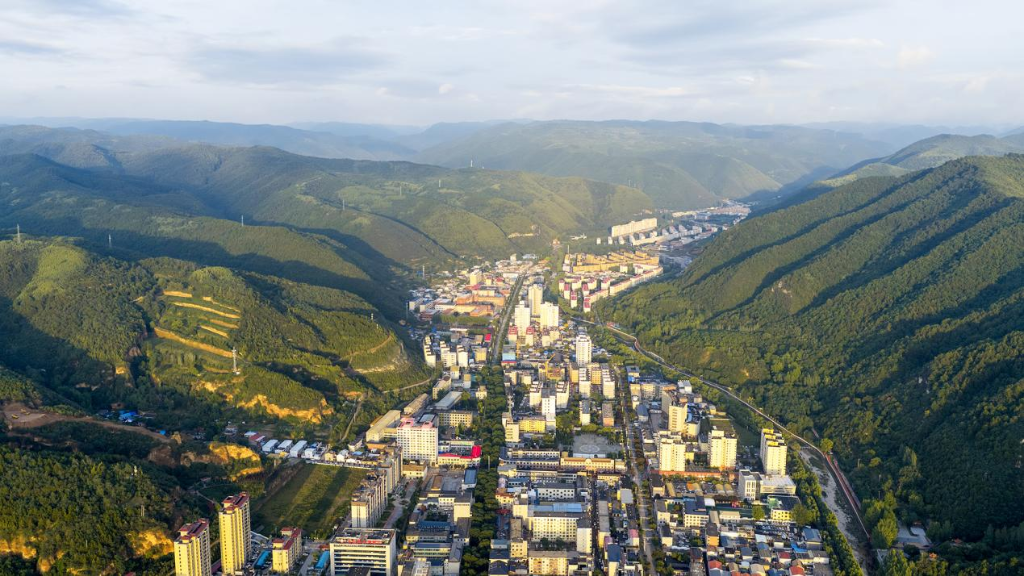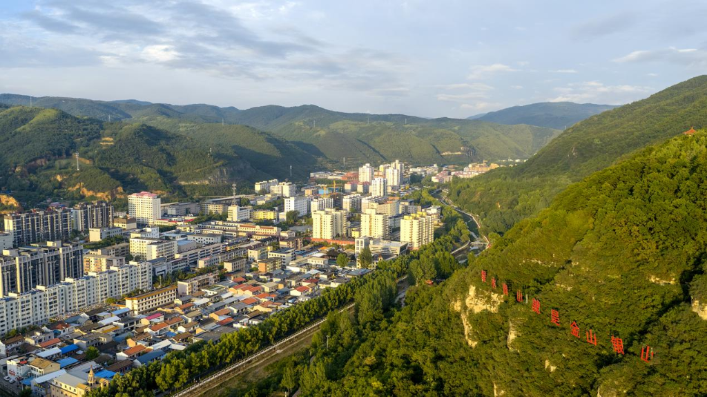雨后傍晚,夕阳的余晖洒在黄龙县城的山林间。