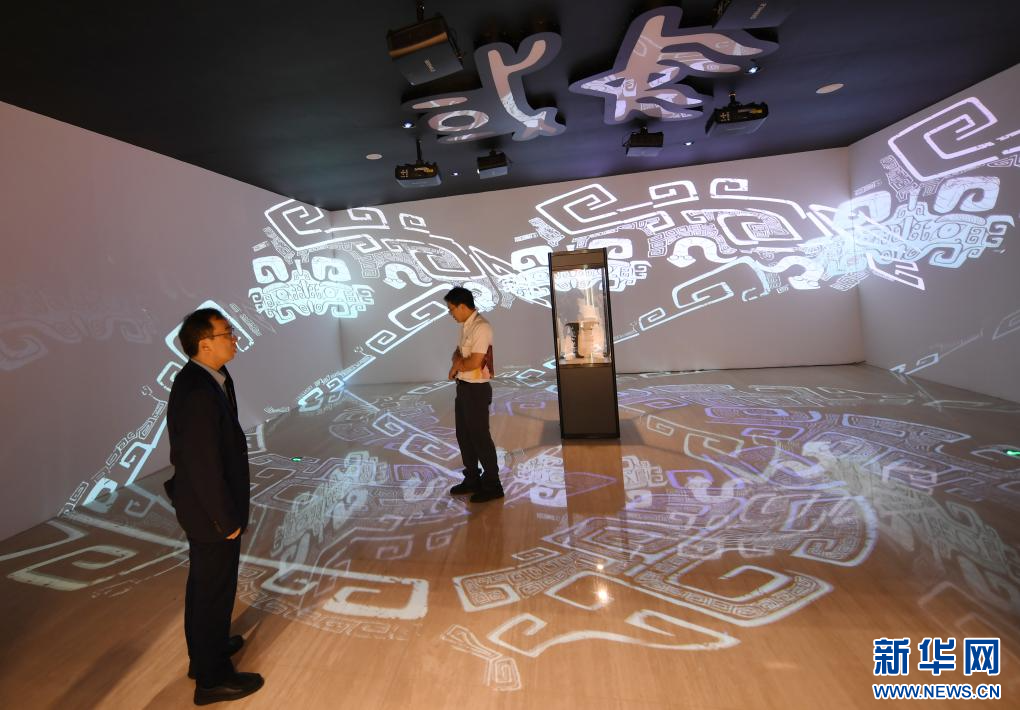 9月17日,与会嘉宾在论坛的文化遗产数字化精品项目展上参观宝鸡青铜器博物院《宅兹中国数字化展》。