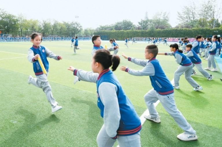 荣誉背后是融入日常的体系化支撑。学校构建“常规课程+专项训练+特色活动”体系:日常体育课、每周两次体能训练、师生每日晨跑+课间操+阳光跑夯实基础;韵律操、武术、腰鼓等课程和足球、篮球、乒乓球等班级联赛激发兴趣;将锻炼场景延伸至幸福河生态公园,开展融合环保教育的户外实践。“我们营造‘师生同练、班班争先’氛围,让每名学生都能掌握运动技能,养成锻炼习惯。”大队辅导员王棪说。