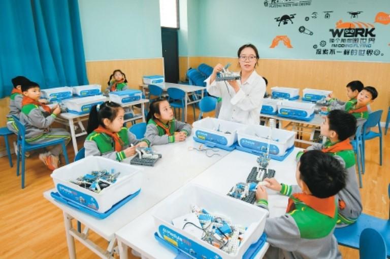 “探索‘五育并举’的有效模式是我们培养全面发展人才的核心路径。”行知小学校长田健说,作为市级科技教育示范校,学校正深入实践以PBL(问题驱动教学法)项目式学习为核心的科教融合,逐步构建起“课程-社团-实践-竞赛”四位一体的育人体系。