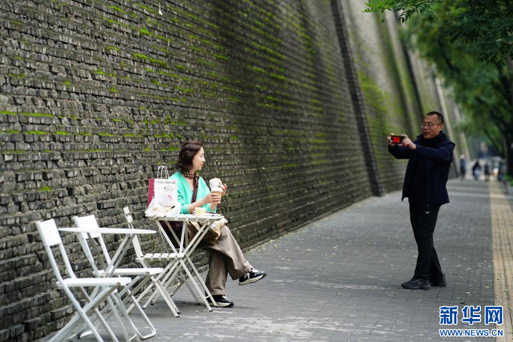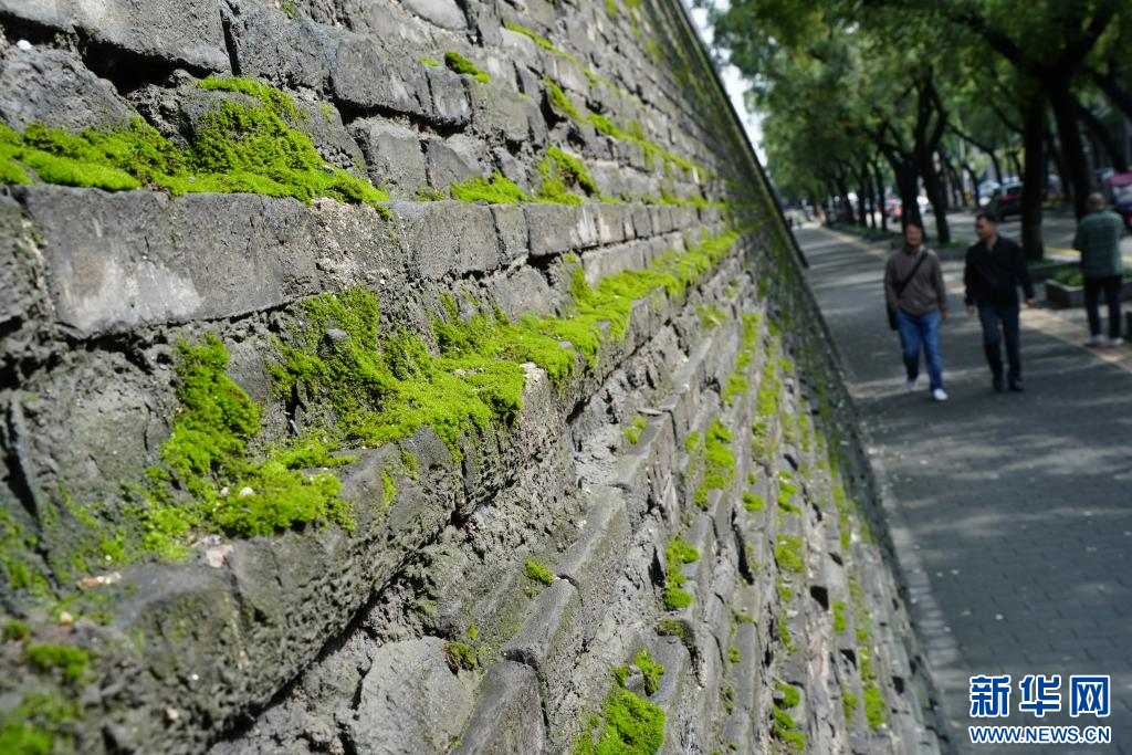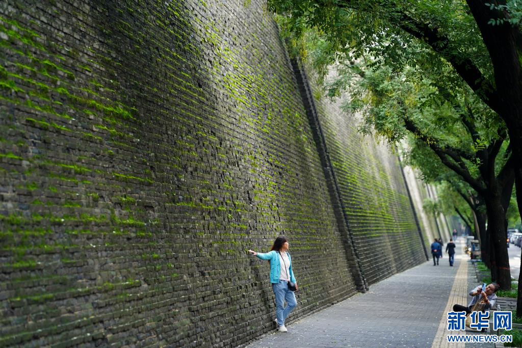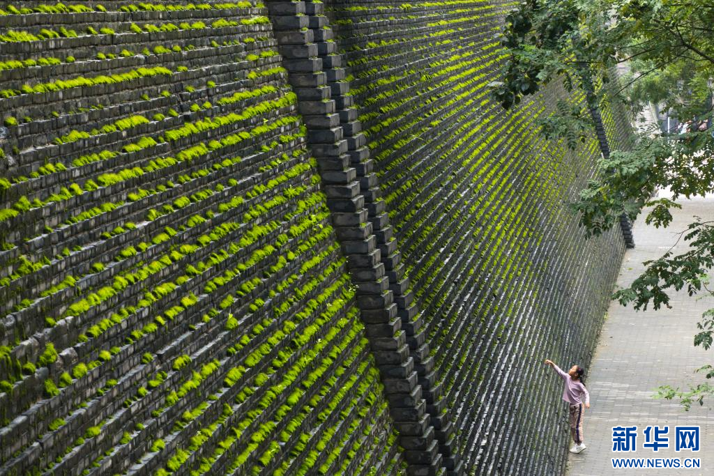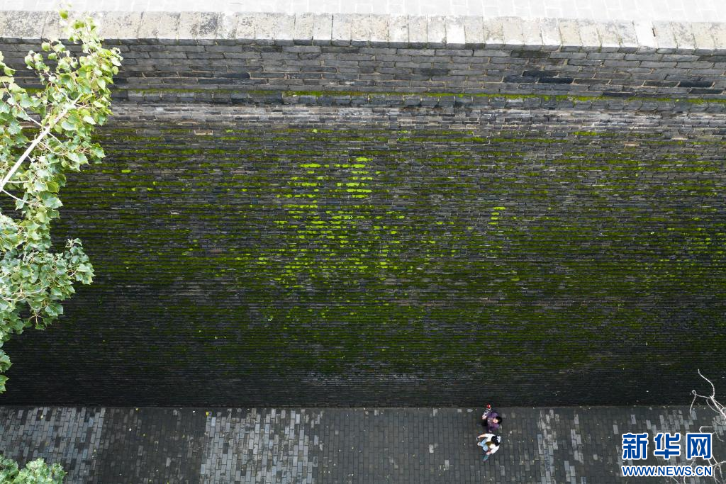 西安城墙始建于隋唐、扩建于明代,是中国现存历史最悠久、保存最完整的古代城垣建筑。连绵秋雨过后,苔藓等植物为西安城墙披上了一层绿色的外衣,吸引市民和游人驻足观看、拍照。