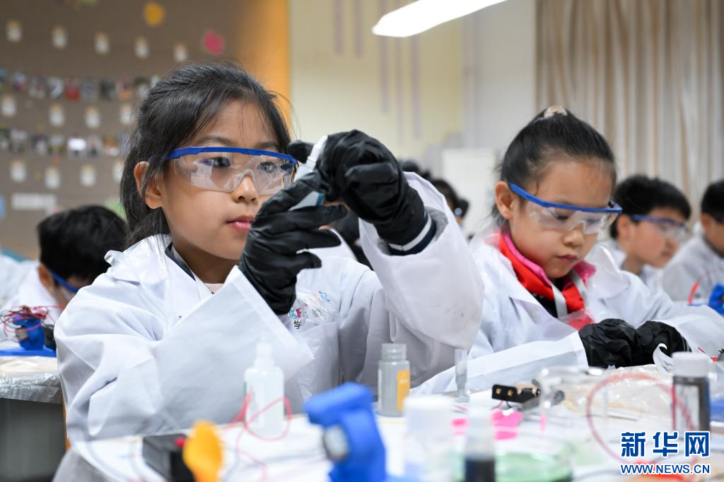 10月18日,学生在西安市新城区太华路小学参加科学实验操作赛。