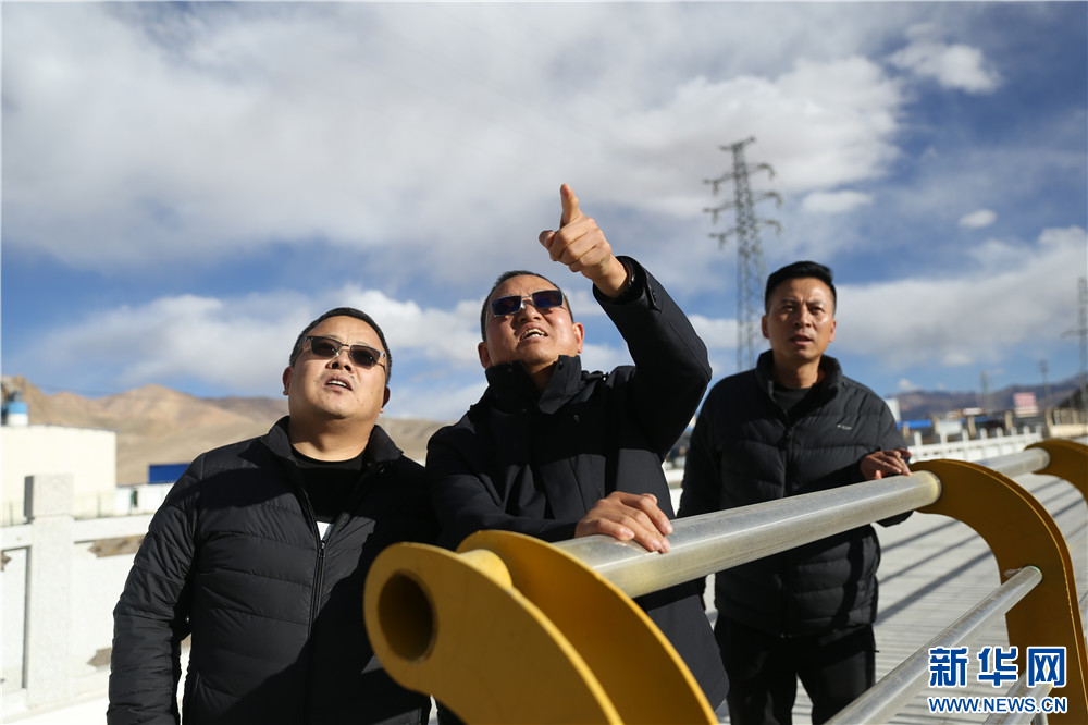 于卫刚与阿里地区住建局陕西援藏干部查看噶尔县一处公共租赁住房项目的建设情况。新华网 王智超摄pagebreak