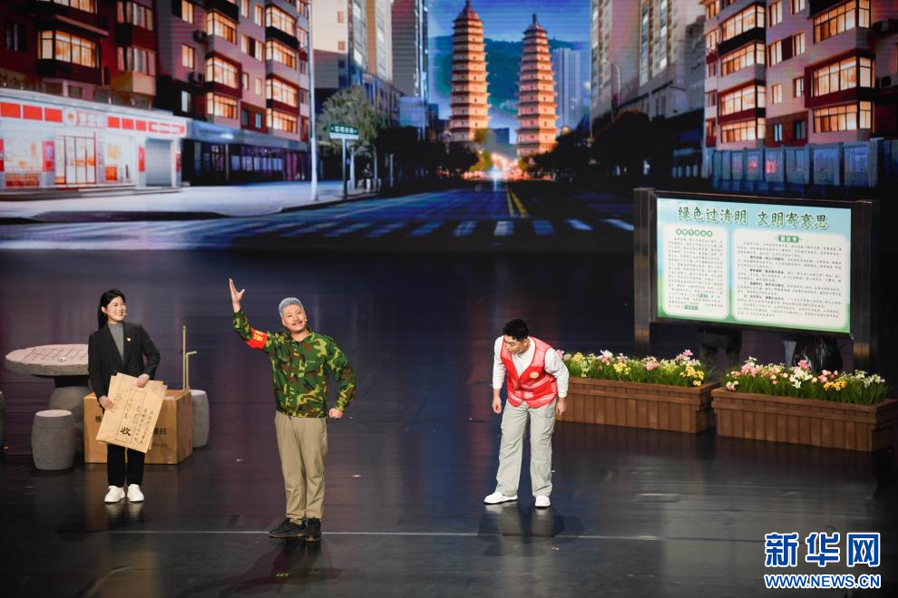 10月29日,演员在全国移风易俗优秀文艺节目展演上表演小品《清明新风》。