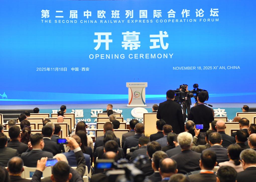 11月18日,第二届中欧班列国际合作论坛在西安举行,本届论坛以“联通亚欧,共享未来”为主题。新华社记者 邵瑞 摄