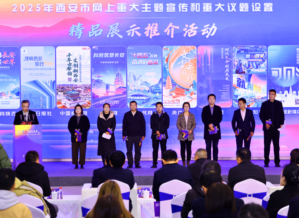 启动仪式上,同步举办2025年西安市网上重大主题宣传和议题设置精品项目展示推介活动,人民网、新华网、央广网、华商网等十家网络媒体现场推介“双重”项目传播特色,展现西安网上宣传工作的丰硕成果与多元布局。