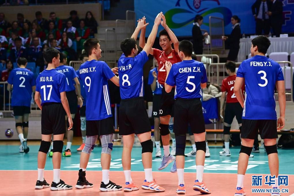 12月5日,中国男子一队球员乐奖励(上)在赛前入场时与队友互动。新华社记者 邹竞一 摄pagebreak
