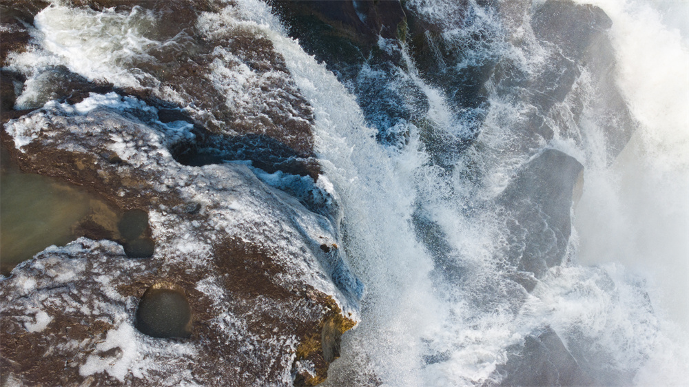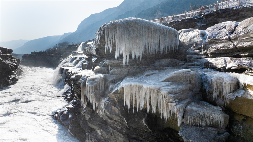 近日,随着气温持续走低,陕西黄河壶口瀑布进入“冰瀑”观赏期。往日奔腾咆哮的千里黄河,在极寒中渐渐凝固,晶莹的冰挂如玉帘垂落,在阳光映照下玲珑剔透,既有北国山河的磅礴气概,又不失冰雕玉琢的妩媚动人,构成一幅震撼人心的冰雪画卷。