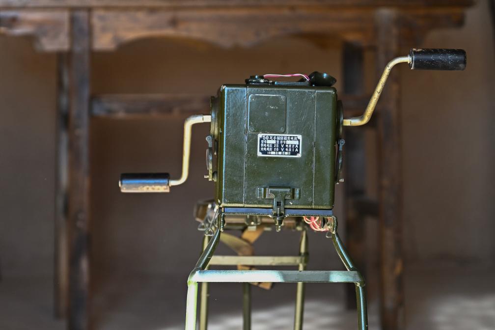“这台手摇发电机,此前一直由延安市气象局老职工张松盛保管,建馆时老人已经去世了,其家属听闻消息,将仪器主动送还。你看,在老职工的细心呵护下,这台机器到今天依旧可以正常运转。”讲解员曹沛遥边说边用双手摇动发电机,指示灯果然亮起。