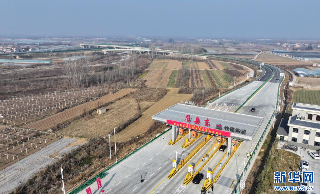 12月29日,车辆从眉县东收费站驶入陕西眉太高速(无人机照片)。