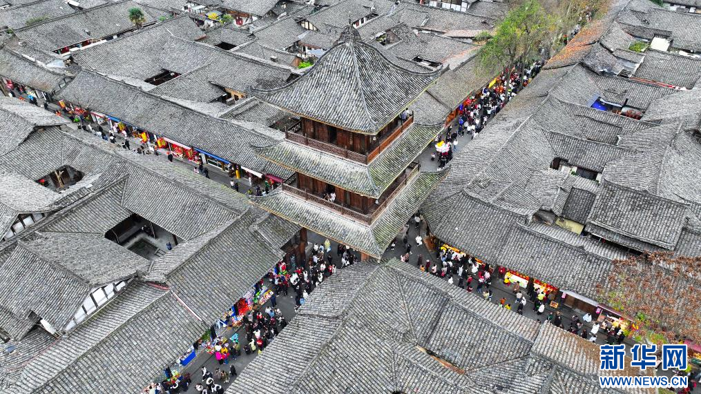 2026年1月1日,四川省阆中市阆中古城街道上游人如织(无人机照片)。