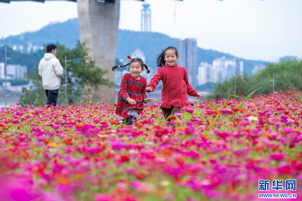 2026年1月1日,小朋友在广西梧州市万秀区龙湖镇高旺村赏花游玩。