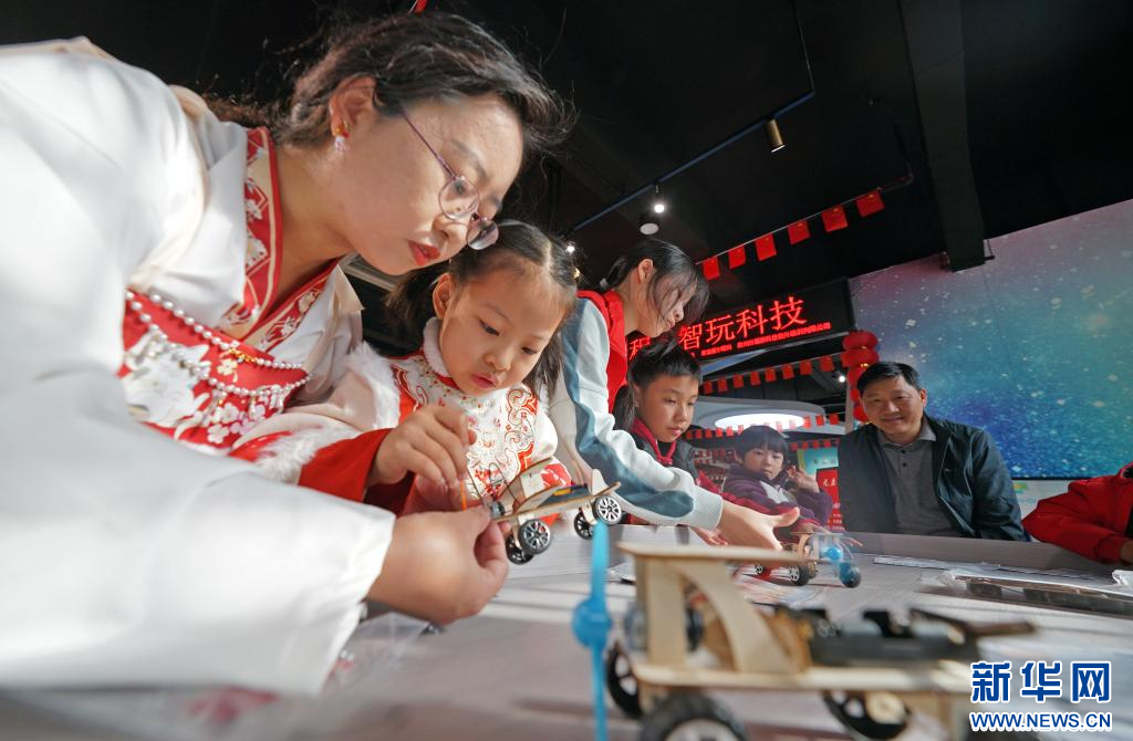2026年1月1日,在福建省泉州市泉港区科技馆,孩子们在家长的陪伴下参加趣味手工课。