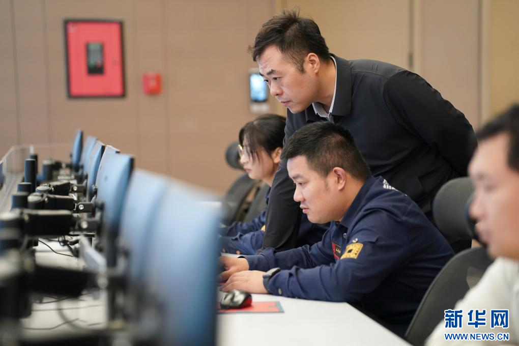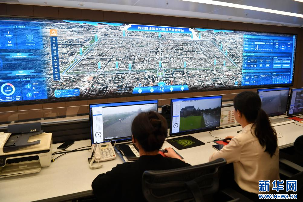 工作人员通过“西安城墙数字方舱综合管理平台”开展工作(2025年9月10日摄)。