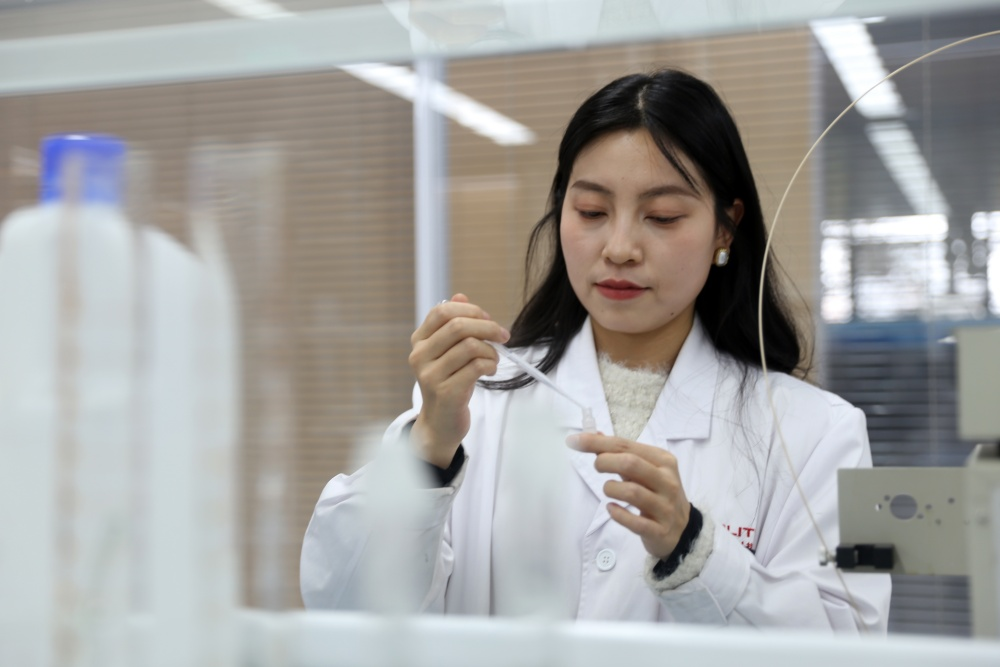 西安蓝晓科技新材料股份有限公司的技术人员正在进行应用实验。新华网 王智超摄