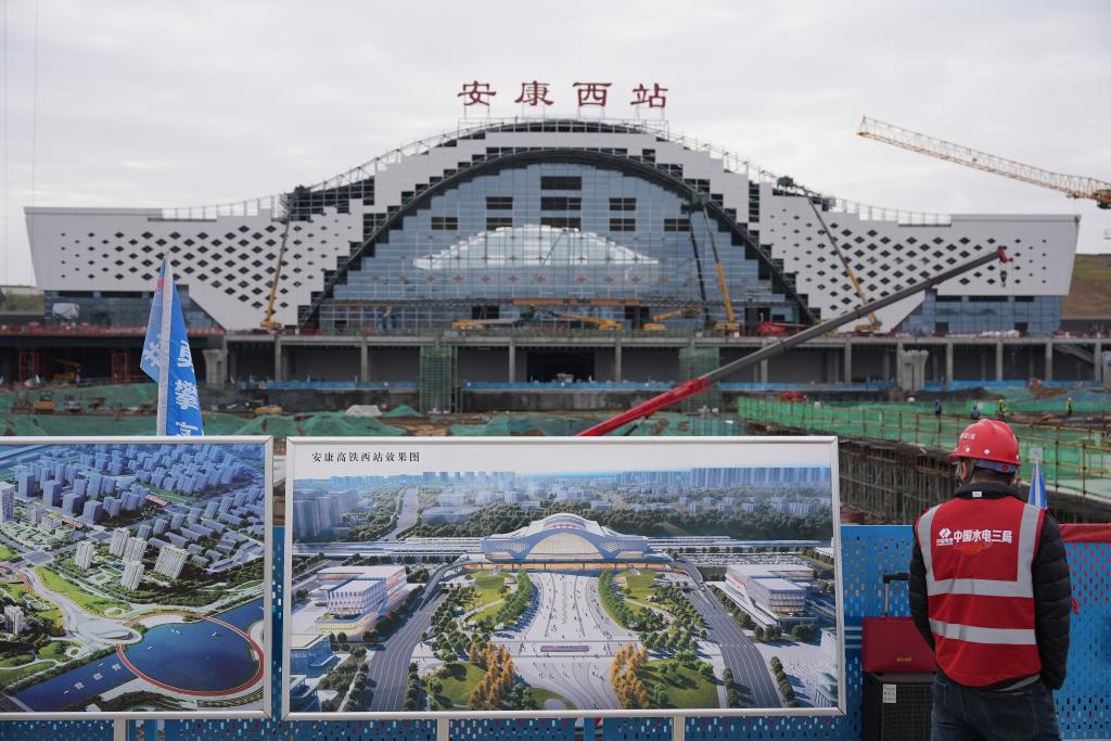 建设中的安康西站(3月18日摄)。