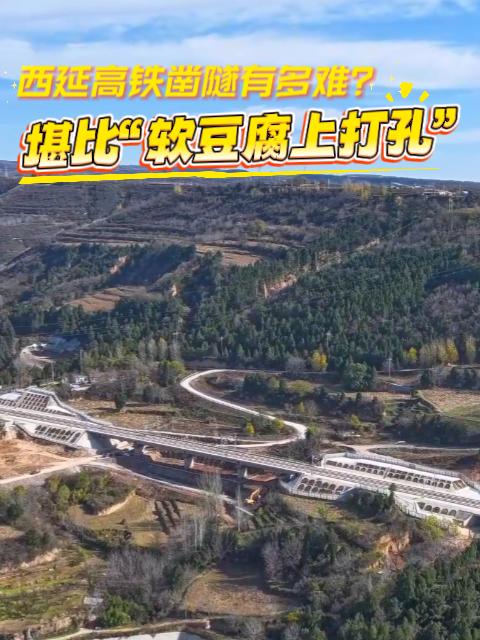 西延高铁穿越黄土高原沟壑区,全线桥隧比高达91%。其难度被西延高铁总设计师形容为“在软豆腐上打孔”。西延高铁用科技驯服险峻的地质,用钢脊连接城市与高原。