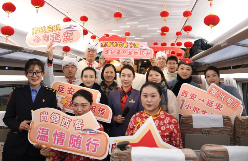 12月26日上午,伴随着一声长鸣,C9312次“复兴号”列车如银色巨龙,自西安北站呼啸而出。这是通往革命圣地延安的第一条高铁,也是穿越时空的“初心之路”。